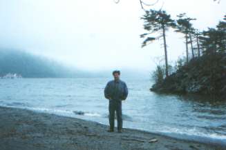 それでも12時ジャストに桜が満開状態の霧の十和田湖に到着。きりたんぽと茹でた小エビを食いながらがっちりとした体格の乙女の像を見て湖畔で食事。