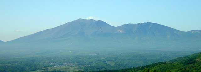 道端に車を止めて写した浅間山です。頂上付近に噴煙が見えます。