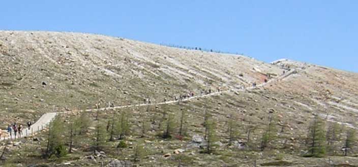 ↓横手山・・・去年は、左手の建物付近から頂上に上りました。