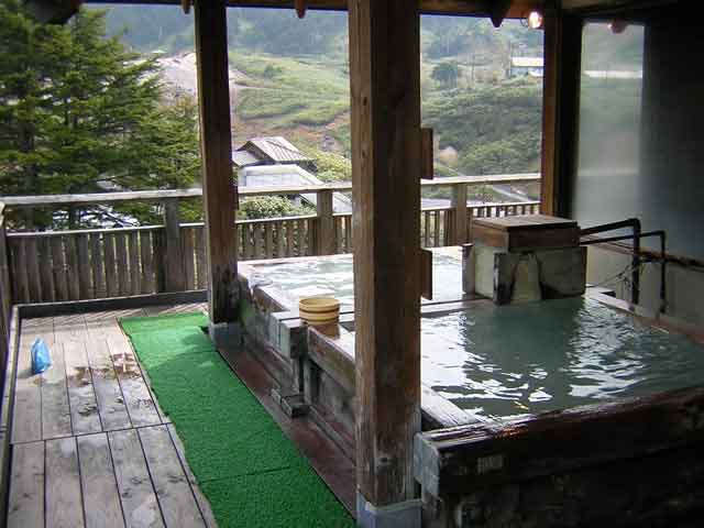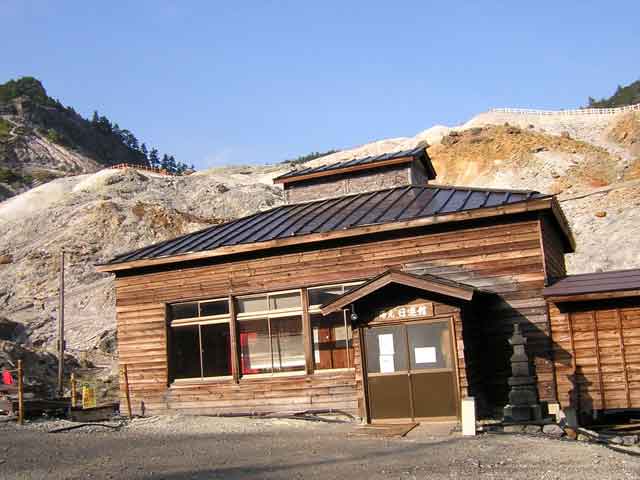 中は、こんな感じです。お風呂はすべてかけ流しの硫黄風呂です。