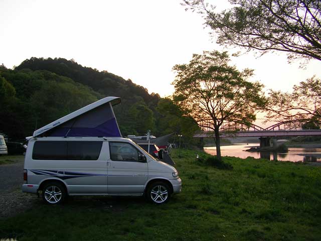家から1時間ほどの所にある御前山という場所。 那珂川河川敷のそばにある「桂道の駅」がキャンプ場所です。 非常に珍しい無料のキャンプエリアにもなっています。GW中とあってほぼ満杯。 大小様々なキャンピングカー50台位と焼肉焼きそばみたいの品評会みたいでした。 夕方に到着、2歳になる息子と川原で石投げ遊び。 我が家のキャンピングカー(笑)は、無改造の昔市販されていたテント付車。 湯沸し道具と椅子だけしか持って行かなかったので、コンビニおにぎりと、焼き蕎麦、カップヌードル&災害時非常食のおこわ(笑) 周りから漂ってくる美味しそうな匂いをバックにお食事。美味しいコーヒーと満月の月夜と川の調べ、ひっきりなしに上空を飛ぶ旅客機の明かり、それと綺麗に見えた北斗七星を眺めてボケーッ・・・。 写真は、我が家のキャンピング車と夕暮れの風景です。 翌朝、ゆっくりと起床。上下に広いベッドがある感じなのでゆったりと寝れました。私は、二階席です。向かったのは、茂木の道の駅。 目的は二つ。 SLと名物イチゴ、とちおとめを混ぜ込んだソフトクリームです。 特にソフトは絶品。プチプチという食感のイチゴを目の前でクラッシュしてソフトに混ぜてくれるのです。 どちらも写真でお楽しみください。ソフトは、女房が舐めながら持ってきたため、少し解け気味ですが(笑) ここで走るSLを見た後に、車でSLを追いかけ、真岡鉄道終点の茂木駅で止まっているSLをゆっくりと見物してから帰路につきました。