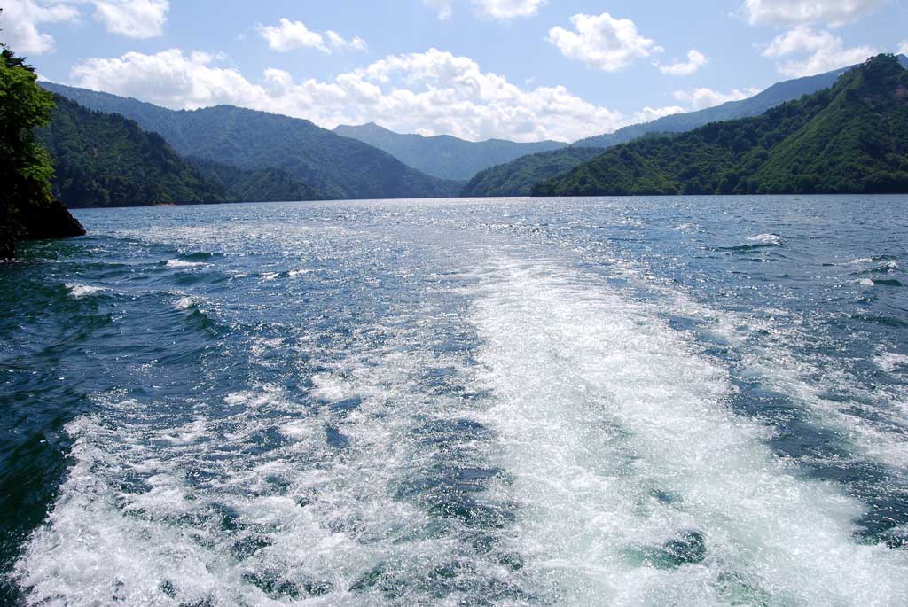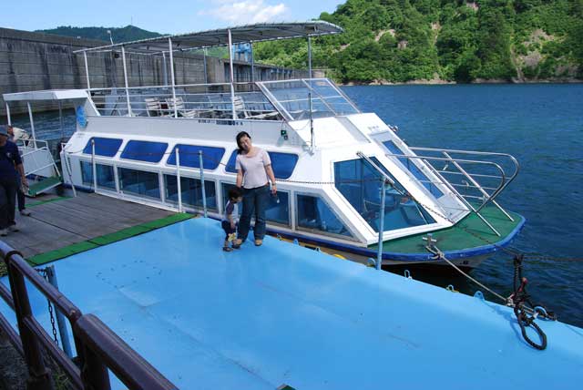 弥彦山麓で一泊してから帰路とは逆方向に出発。 北陸〜関越自動車道の小出ICで降りて、一路山岳路で福島に向かいました。 途中で新潟中越地震に見舞われた山古志村に寄ってから雪の残る山を縫いながら田子倉ダムへ。 総貯水容量4億9400万立方メートルでお隣の奥只見ダムについで日本で2番目の大きさを誇るダムです。 私のお気に入りスポットの一つ、ここに来るのは、今回で4度目になりました。 今回はまだ乗ったことがない遊覧船を期待していたのですが、平日で人出も少なく諦めかけていたところ、他の乳児連れ一家も一緒になり、運良く船を出して貰えました。 約30分の湖上散策でしたが気分は初夏! 湖のブルー、山々の沢山の緑、山頂の雪、水しぶき、そして青い空に浮かぶ雲の白。子供よりはしゃいで遊んできました(笑)