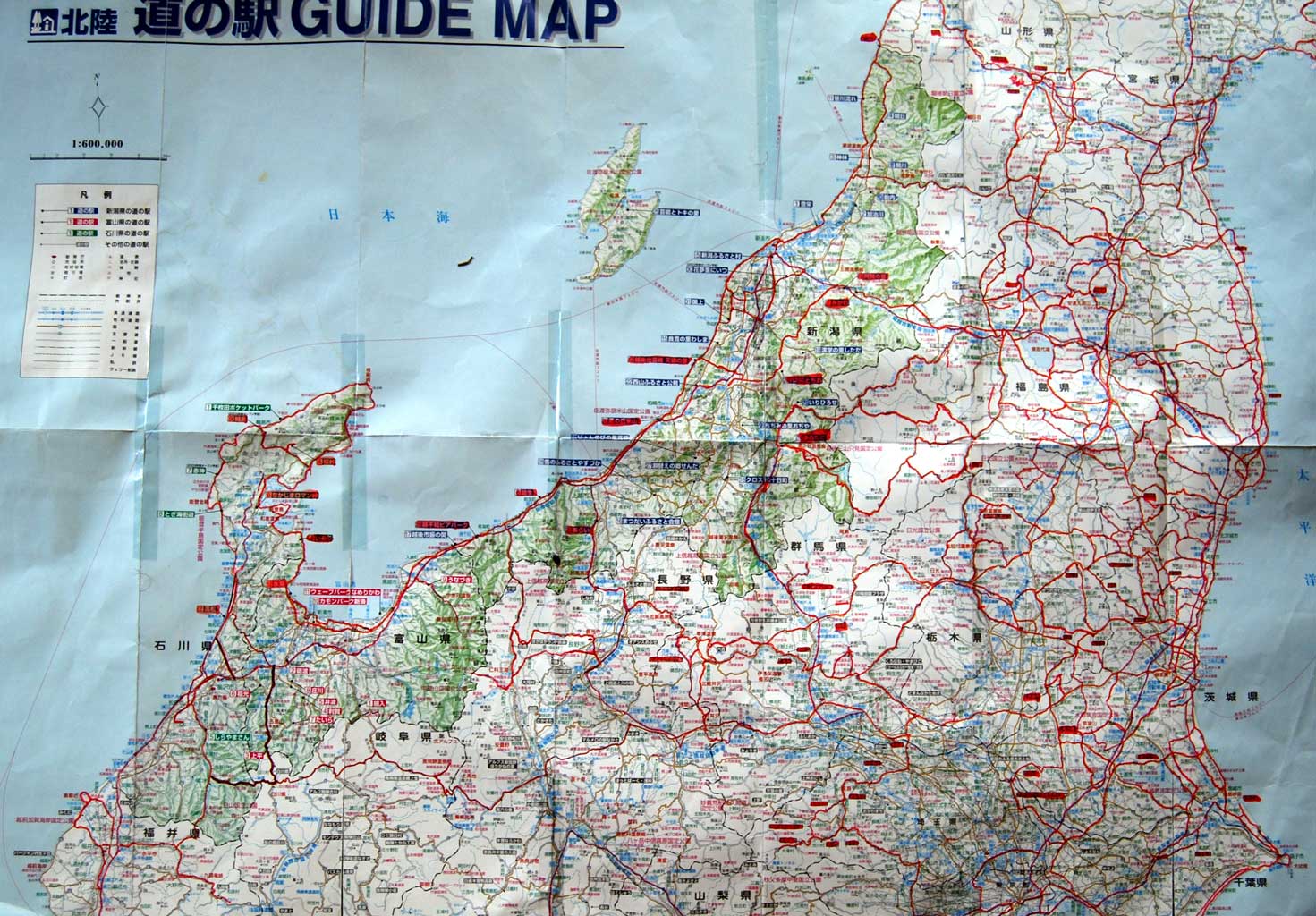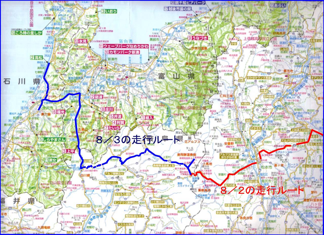 それを変えたのは、長年行きたかった能登半島への旅。遠すぎると思っていたわけですが、常磐・磐越・北陸道と高速を乗り継げば意外と楽に早く行けることがわかり、渚ドライブウエイでの海水浴を目的に3年ほど通いました。 高速道路経由も飽きて、次第に一般道経由に。 その結果草津、志賀高原、万座、長野そして飛騨が私の行動範囲に入ってきました。 そんな感じで走り回った地図が今日公開する地図です。赤く塗った道がこれまで走ったところです 皆さんがお住まいのところを走っているかもしれませんね。