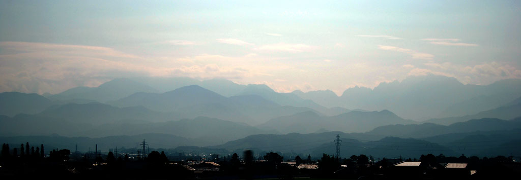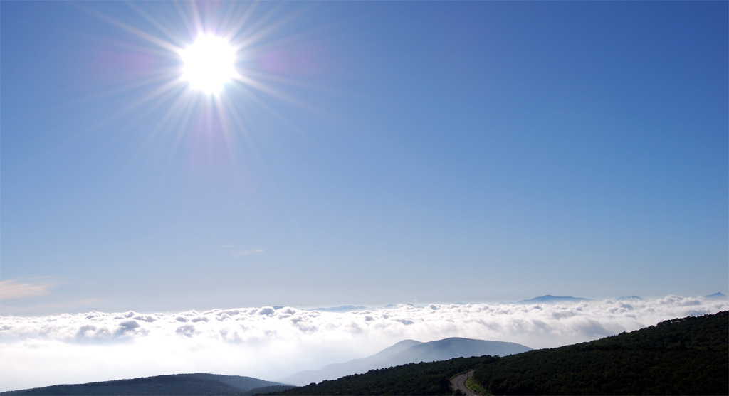 小矢部SAで日の出を迎える 周囲にも車中泊をしたと思える車が数台停まっている。 いわゆるキャンピングカーも数台。 そういう季節なんだな。 朝食をとりながら本日のコースを考えた。 ただ単に帰るのであれば、北陸道を直進し 新潟から磐越自動車道、いわきから常磐自動車道で今日中に帰れる。 休みは明日まで。 やっぱり寄り道をすることにした。 白馬、長野、志賀高原、浅間山ろくを経由することにした。 早速移動開始。 右手には朝もやの中にうっすらと立山連峰が浮かんでいる。 高速道路が海の上を走る親不知を通過。