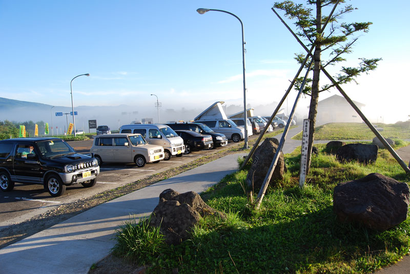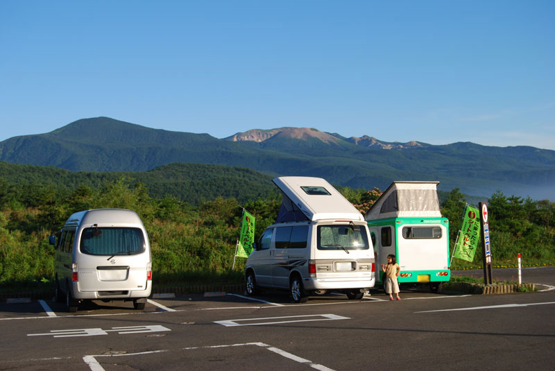 だいたい5時過ぎに目が覚めて、その辺をウロウロと散歩します。 写真は、先日利用した福島の土湯の道の駅で写したものです。標高は1000m位かな? 下界の雲が薄もやのように上がってきて消えていきます。 駐車場には、私の車と同じように屋根が持ち上がるポップアップルーフ式テントの車が何台かいました。 私の隣には軽自動車ベースのカワイらしいキャンピングカーが止まっていました。 名前がテント虫、いかにもそんな感じでした。 >小さな女の子を連れた家族でした。 Pキャン仲間同士なので、普通におはようございますと挨拶。良い天気ですね! 景色も最高! なんて 短い会話を交わします。 さっとお湯を沸かし、コーヒーを飲みながらぼーっと景色を見ていました。