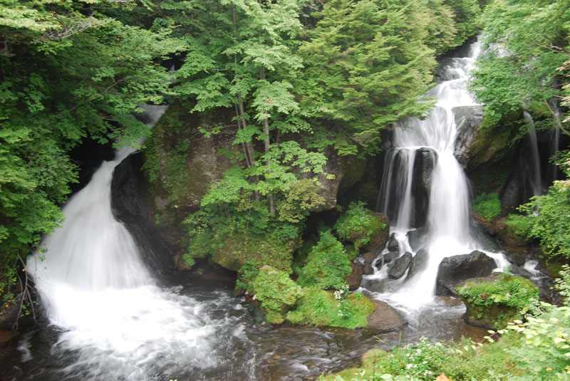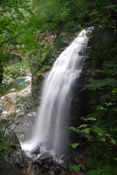 日光中善寺湖畔の朝です。 湖畔の木々は赤く色づき秋の気配が来ていました。 濃霧で何も見えない華厳の滝の音を後ろに帰路へ。 同じ道は帰りません。 宇都宮ではなく塩原経由で帰りました。 途中で前日の竜頭の滝に続き、この旅二つ目の竜の名を持つ滝を見ました。 龍王峡の滝です。> 竜ではなく龍ですから、こっちの方が格が上なのかな? ハヤトを歩かせ、急な階段を降りて滝つぼ付近までいきましたが、 雨が降り始めたのでショボショボ、ビショビショ(汗で!)と帰ってまいりました。 途中、湯西川の道の駅にある立ち寄り温泉に浸かって一休みして途中で食事をしてゆったりと帰宅。