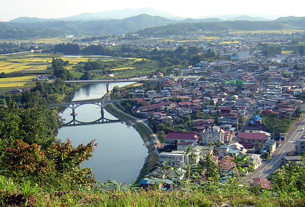 女房の実家のある大江町にある小高い山の上にある小さな公園。 誰が名づけたのか知りませんが、日本一公園。 ここに登ってきて曲がりくねる最上川と遠くに見える朝日岳の雄姿を見ればそんな気になりますね。 最上川にかかる日本の橋。手前が古い橋で川面に綺麗に写っています。 後ろの橋は新しいものですが、流れが急で綺麗に写らないとのこと。 この公園から綺麗に見える場所に橋をかけたわけではないでしょうが、何となく粋を感じます。 曲は、日本一にちなんで富士の山です(笑)