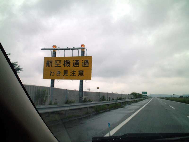 富山付近におせっかいな道路標識があります。 「航空機通過 わき見注意」 何もなければそのまま通過してしまうはずですが、これがあるために余計なわき見をしてしまいます。 わき見をしてわかったこと、左側には空港の滑走路がこちらを向いて作られていました。 富山空港の滑走路でした。 標識に気を取られわき見したら左側にいきなり飛行機が視界に入ってきたほうがビックリしてしまって事故の原因になりかねません。 実際、こうやってわき見して写真まで撮ってしまうオバカな人もいるわけです(笑) ここを通る度に飛行機来るのかな? いるのかな?とわき見常習ポイントになってしまいました。 あなたは、わき見注意と言われ、すなおにわき見しないで通り過ぎることできますか!?