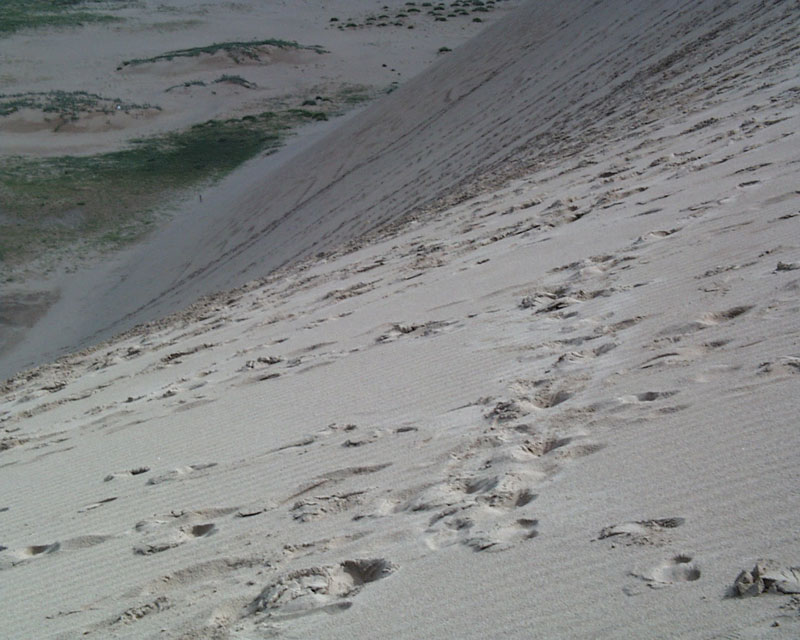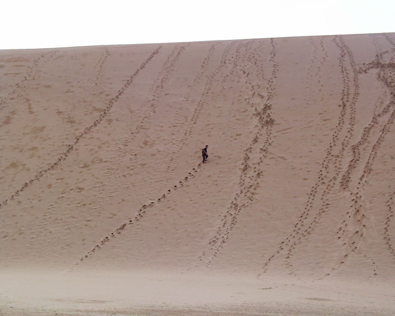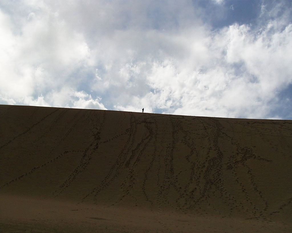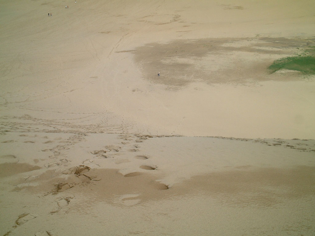 あそこに行くと大きな何かを書きたくなる気持ちは分からないでもありませんが・・・・ 一昔前に私達も小さな絵や文字を書いたことがあります。まあ何事にも限度はあるということですね。 とか言いつつ、私も長さ数百メートルの落書きをしたことがあります!?足跡の落書きですけどね。 砂丘を登るのは想像以上に疲れました。 |