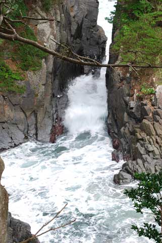 国内を旅しているとあちこちで、いろんな割れ目に遭遇します。 糸魚川を通るフォッサマグナは、日本の代表的な割れ目ですね。ここは大きすぎて私のカメラでは写せませんでしたので、小さいのを紹介していきます。 最初は、先日のコンサートの翌日に行った三陸海岸の神割崎です。 岬の先端が斧で断ち切られたように切れています。 そこに海水が押し寄せると・・・ こんなふうに・・・ この日は、波がほとんど無かったのでこの程度ですが、嵐の時には・・・見てみたいものです。