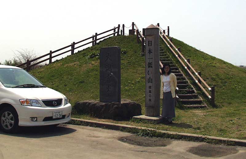 富士山は、日本一高い山ですが、じゃあ・・・日本一低い山は?! そんな馬鹿げたことを考えもしなかった私ですが、堂々と「日本一低い山」という看板を立てた山がありました」・ 標高0m! 場所は、秋田県の八郎潟。 干拓で地面になった場所。地面が海面より低いのです。そこに作られた人工の土盛り。 頂上部分の高さが、海面と同じ。 ということで標高ゼロの日本一低い山でした。 勿論しっかりと登山してきました(笑)