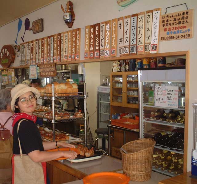 食パン1斤1万円!・・・・ そんなものでは日本一にはなれません! 最高の材料を最高の釜で焼いて・・1斤10万円 ハハハ・・・そんなのあるわけないですよね(笑) でも、ここは日本一高いパン屋さんなのです。 昨日の日本一国道を通り過ぎると、まもなく志賀高原。その中でも一際高い山が横手山。 この頂上にパン屋さん兼レストランがあるのです。 山の中腹?にあるパーキングエリアから動く歩道と凄く急勾配のリフトを使って頂上に登れます。 景色は勿論最高、志賀高原の緑の美しい山々、遠くには、日本アルプスの峰峰も見えます。 この綺麗な景色を楽しみながら、綺麗な空気で焼いたパンを楽しめるのです。 写真は、ここからの眺め、パン屋さん、その内部です。 ちなみにパンの値段は、少し高めだったかも知れませんが、日本一ではありません。 味は忘れましたが、美味しく食べたと思います。