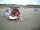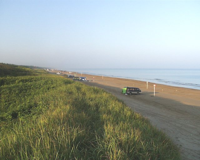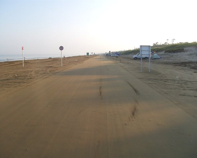 海水浴日よりで、結構たくさんの人が来てました。渚ハイウエイは、約3km位砂浜を走れ、その両脇が駐車スペースに