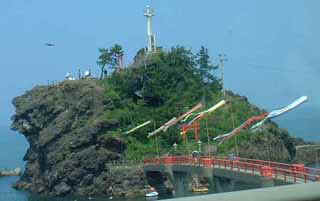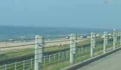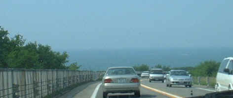 やがて車は糸魚川。 フォッサマグナですね。 親不知付近では高速は海の上を走ります。