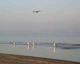 早朝5時ごろ・・・・・ 波打ち際のお客様は水鳥達。