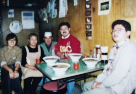 テーブルの一つに4人で腰掛け、ラーメンを頼んで出来上がったところで、店の