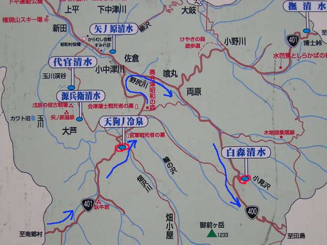 「天狗の冷泉」は道路わきから流れ出していました。甘い水でした。写真撮るの忘れた。