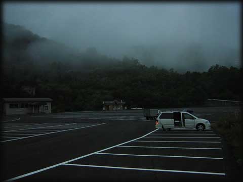 もやが立ち込めた不思議なトンネルを進み、すでに無人となっている巨大な駐車場に到着。