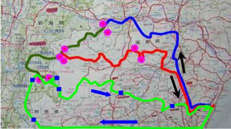 途中の尾瀬入り口で休憩、福島県田島から栃木県塩原温泉経由、